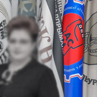Судя по фотографиям, Белорусский профсоюз работников местной промышленности и коммунально-бытовых предприятий имел темно-синий флаг с эмблемой (это устаревшая версия эмблемы). Фото - https://dneprovec.by/belarus/2021/01/26/29702. На этом фото флаг профсоюза шестой справа. |