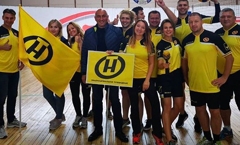 Спортивная команда ОНТ использовала жёлтые флаги с логотипом. |