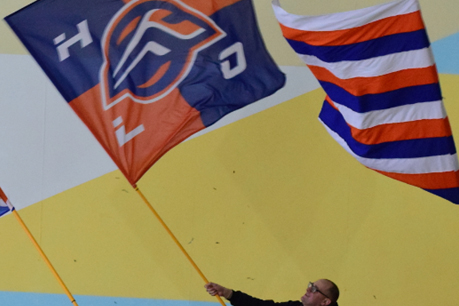 Во дворцах спорта в ходе проведения чемпионата вывешиваются белые флаги с логотипом клуба. |