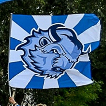 Болельщики клуба используют флаг с белым крестом, синими и красными четвертями, а также флаги из вертикальных синих, белых, красных полос. По материалам телерепортажей |