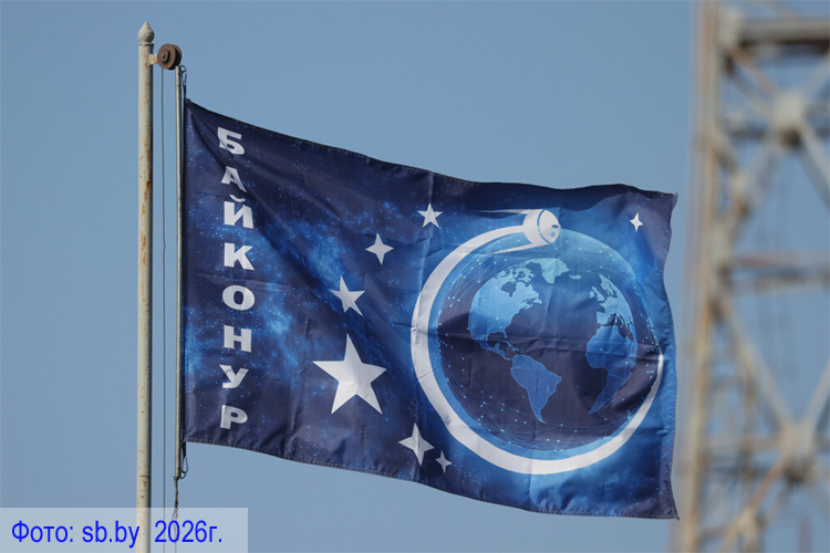 В 2026 году белорусскими журналистами был сфотографирован такой вариант флага на космодроме Байконур. Сюжет рисунка тот же, что и ранее, но художественное выполнение несколько более живописное. Источники фото - SB.BY |
