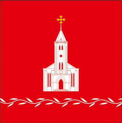 Описание флага села Албота-де-Сус [перевод "Вексиллография"]: "Флаг представляет собой красное квадратное полотнище, в центре которого изображена белая неоготическая церковь, увенчанная перекрещенным желтым крестом, а внизу — белая волнистая лента, украшенная ивовыми листьями того же цвета". По информации В. Маркова |