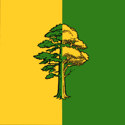Описание флага коммуны Миклешть: "Флаг представляет собой квадратное полотнище, разделенное вертикально на желтую и зеленую часть, в середине изображено вырванное с корнем, рассеченное дерево, наполовину чёрная сосна, наполовину акация. |
