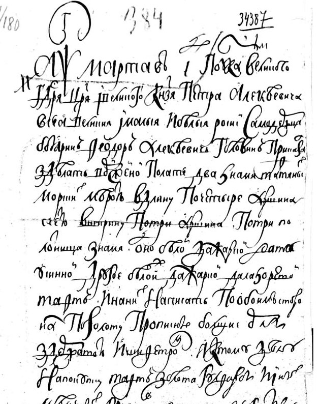 Сохранился любопытный документ 1699 года - письмо Петра I воеводе Димитрию Полонскому, где он запрещал кораблестроителям в Воронеже делать на корабли флаги, а также вырезать на корме корабля гербы "до нашего Великого Государя указу". Видимо в это время Пётр как раз обдумывал дизайн будущего флага.