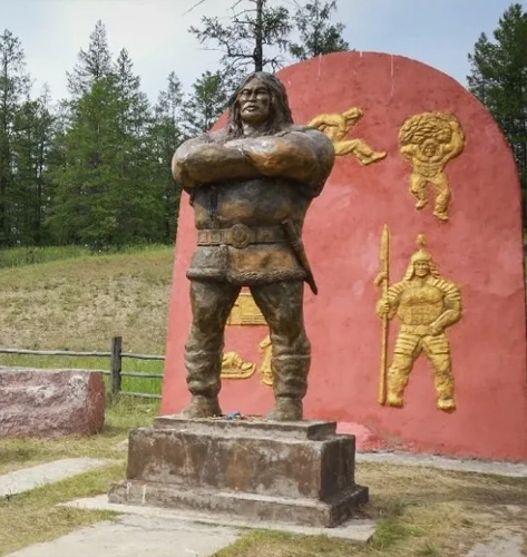 Богатырь на флаге - народный герой Майагатта Бэрт Хара.