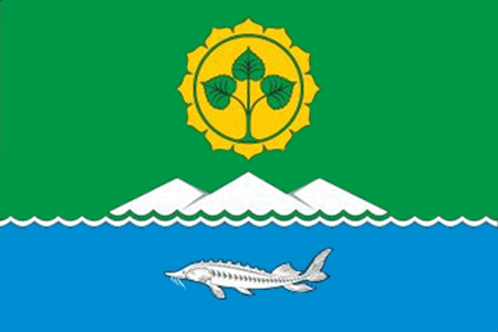"Прямоугольное полотнище с отношением ширины к длине 2:3, воспроизводящее композицию герба Чериктейского наслега в зеленом, синем, желтом и белом цветах".