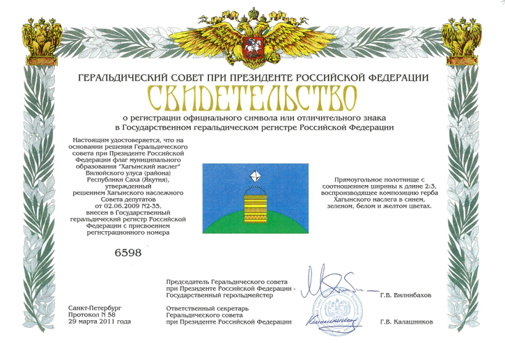 Решением Хагынского наслежного Совета депутатов №2-35 от 2 июня 2009 года.