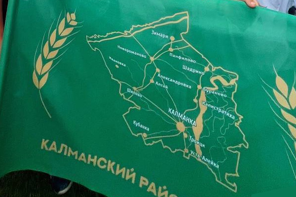 Юбилейный флаг к 90-летию Калманского района. Фото прислано В. Попоски. |