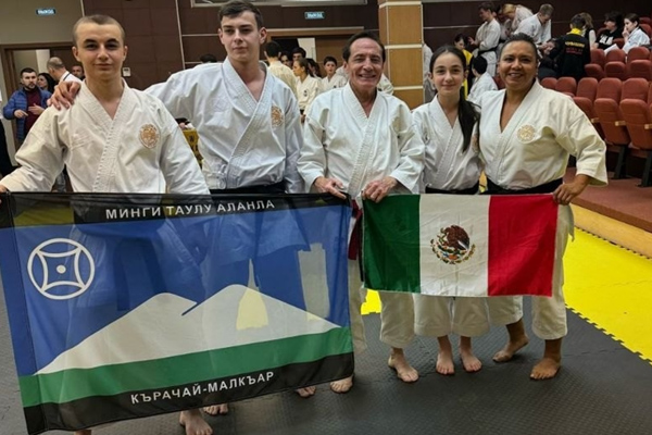 Дзюдоисты Малокарачаевского района КЧР используют на соревнованиях такой флаг. Впрочем, возможно это не районный флаг, а некий общий национальный флаг карачаевцев и балкарцев. Фото прислано В. Попоски, источник - страница администрации района в сети "ВКонтакте" |