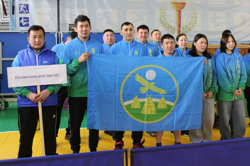 Мы пока не располагаем данными об официальном флаге Немюгюнского наслега. Но фактически в качестве флага наслега используется синее полотнище с геральдической эмблемой наслега.
