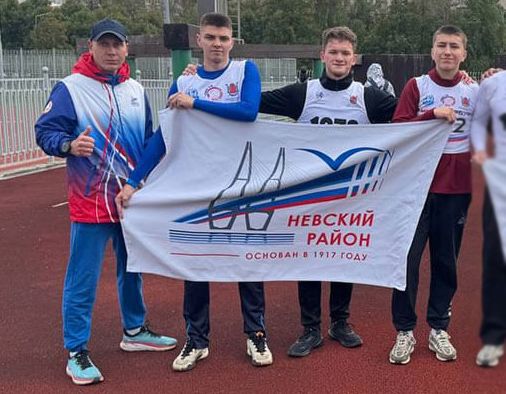 Флаг Невского района Санкт-Петербурга (неофициальный?) На фото - спортсмены Невского района.