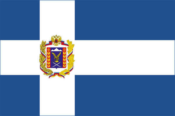 Первый флаг Предгорного района - синее полотнище с белым крестом, в середине которого герб района.