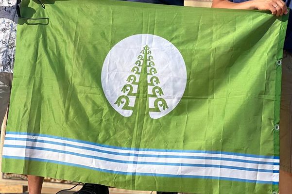 1.3. Обоснование символики флага: Центральная фигура – стилизованное изображение священного мифологического дерева народа Саха «Аал-Луук мас», символизирующего духовно-культурное развитие, тягу к жизни. Попарно расходящиеся ветви дерева показывают количество населенных пунктов улуса. Белый фон священного дерева символизирует суровую красоту Севера, чистоту и мудрость. Зеленое поле обозначает короткое яркое лето, цвет просторов Таатты, ее благодатную землю, а также темно-зеленый цвет – это констатация тюркского происхождения народа Саха. Белые полосы обозначают три реки, протекающие через территорию улуса – Таатта, Амга, Алдан. Включение голубых полос по международной символике олицетворяет честь, верность и искренность.