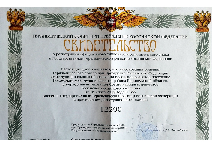 Флаг внесен в Государственный геральдический регистр РФ под № 12290.