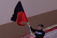 Болельщики часто используют чёрно-красные флаги. -- |