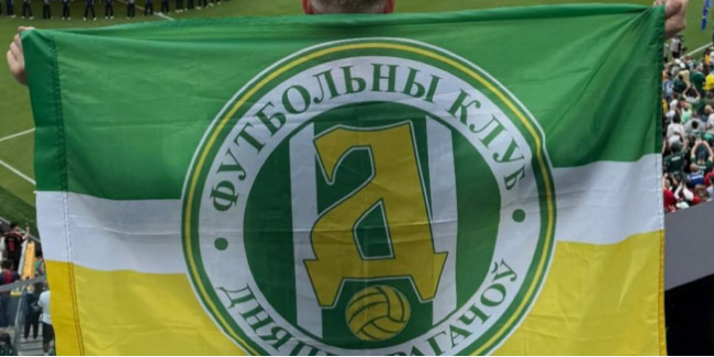 Новая эмблема размещается на чёрно-жёлтых полосатых флагах. Источник фото GOALS.BY |