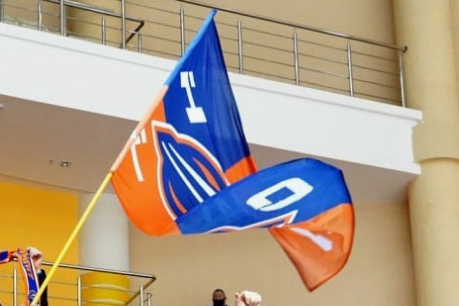 Болельщики клуба используют флаг с белым крестом, синими и красными четвертями, а также флаги из вертикальных синих, белых, красных полос. По материалам телерепортажей |