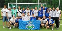 Эмблема и флаг клуба утверждены Приказом директора от 17.01.2012 года № 10 и зарегистрированы в Государственном геральдическом регистре 20.01.2012 года под № В-906 (флаг) и В-905 (эмблема). Описание флага: "В голубом прямоугольном полотнище эмблема Клуба". Эмблема - в голубом поле изображение герба г. Минска, в нижней части зеленое поле, две клюшки и мяч. В центре – название Клуба. Источник- Архивы Беларуси. Фото - "Минские новости" |