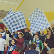 Во дворцах спорта в ходе проведения чемпионата вывешиваются белые флаги с логотипом клуба. |