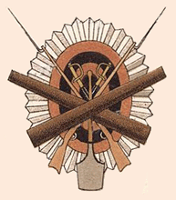 5 марта 1912 года Высочайше утвержден (ПСЗ РИ, №36670) флаг Военного министра и включен в Морской Устав (ст.1295 (1). Флаг Военного министра белый, в крыже гюйс, а под ним офицерская кокарда с перекрещивающимися в ее середине двумя орудиями, двумя ружьями, двумя саблями и лопатой. Орудия, приклады ружей светло коричневые, эфесы жёлтые, лопата стальная с жёлтым черенком. Флаг поднимался на кораблях на грот-мачте, на шлюпках - на носовом флагштоке. ... |
