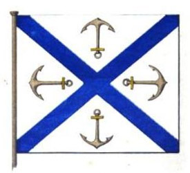 Командира порта. Это были андреевские флаги. У главного командира порта в центре в белом прямоугольники изображались положенные накрест якоря, а на флаге командира порта - один якорь вертикально.