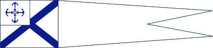 Брейд-вымпел коменданта морской крепости имел указанный флаг в головке и белые косицы. |