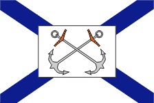 16 июля 1855 года Главным начальникам приморских областей и Главнокомандующим войсками, имеющими под своим начальством морские силы, были присвоен белый флаг с Андреевским крестом и гюйсом посередине. |
