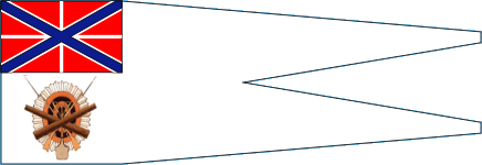 Шлюпочный флаг Начальника артиллерии Черноморского флота и начальника артиллерии в портах - красный с белой полосой по нижней кромке и двумя скрещенными пушками в белом кантоне. Флаг введен высочайшим повелением, объявленным в приказе Нач.Гл.Морск.Шт. Е.и.В. 27 мая 1837 года и упразднён 12 июля 1865 года (ПСЗ №42305). В Морском Уставе 1853 г. флаг начальника артиллерии в портах подтвержден в ст. 944. Флаг только шлюпочный. В 1865 (ПСЗ 42305) из Морского Устава ислючены флаги упраздненных должностей, в том числе и флаг Начальников артиллерии в портах [приказ генерал-адмирала Константина № 98]. |