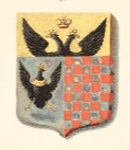 "вверху Госуд. герб на золотом фоне; внизу слева на серебряном фоне черный одноглавый орёл с золотыми короной и ожерельем; справа красный и серебряный шахмат" (по В. Звегинцову)