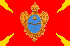 Ротные знамена Астраханского пехотного полка (1712): "Красные, с желтою полосою посредине и с изображением, в верхнем углу, у древка, золотой сабли под короною". Материалы "Исторического описания одежды и вооружения российских войск..." А.Висковатова |