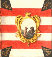 Знамя Тюменского полка (1764), расцветка соответствует полкам Сибирского корпуса. По А.Висковатову Известно, что Тюменский карабинерный полк в 1764 имел штандарт расцветки Сибирского корпуса. По В. Звегинцову |