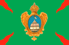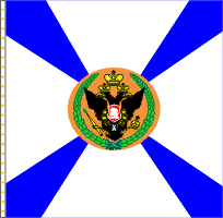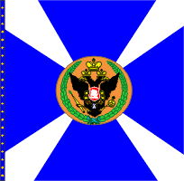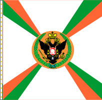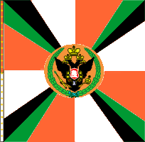 28 февраля 1798 года Московскому гарнизонному полку пожалованы 40 знамён образца 1797 года. У одного крест был белым, а углы синие. У остальных крест синий, а углы белые. Древки белые. По А.Висковатову и В. Звегинцову. В 1802 году из этих знамен в полку оставлено по два в батальоне. В 1813 году все знамена отобраны. А.Висковатову "Хроника российской императорской армии ..." Знамя пожаловано Московскому гарнизонному батальону 11 октября 1846 года после инспекции Государем императором. Знамя простое с зеленым крестом, белыми углами, золотым шитьем, без вензелей. Материалы книги В.А.Соколова "Флаги Российской империи и СССР в документах". Подтв. - Звегинцов. На основании выс. приказа от 25 июня 1838 года при знамени 1846 года имеются Александровская лента и скоба. А.Висковатов "Хроника российской императорской армии ..." В Росписи знамен 1851 года о Московском гарнизонном батальоне (Внутренней стражи) сказано, что он имел простое знамя без надписи (высоч. повел., объявл. Команд. Отд. корп. Внутр. стражи, 12.10.1846 г.) При знамени имеется скоба на основании высоч. указа 25 июня 1838 года. См. "Роспись знамен, штандартов и особых отличий в войсках состоящих", СПб, 1851 г. Знамя 1846 года затем использовалось 73-м резервным пехотным батальоном. |