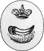 Иваногородский полк Выборгского гарнизона в 1744 был переведен в Фридрихгам и переименован. Военной коллегией велено использовано на полковых вещах печать (герб) Фридрихсгама, утвержденную Правительствующим Сенатом 21 декабря 1743 года: "в средине лотка и наверху корона". По материалам "Гербоведа" С.Тройницкого |