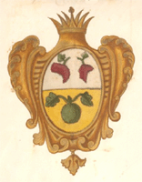В 1730 году утверждён герб для знамен Терского гарнизонного полка: в золотом щите на двойном поле: в верхней, белой, половине две кисти красного винограда, а в нижней, жёлтой, зелёный арбуз. По А.Висковатову |