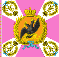 В Украинской инспекции для цветных пехотных знамён образца 1803 года установлены такие цвета: крест розовый, углы белые. По В. Звегинцову |