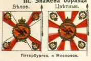 В докладе Воинской комиссии от 10 мая 1763 года для Санкт-Петербургской дивизии установлены алые знамена с зелеными наугольниками. Кроме цветных в каждом полку полагалось одно белое знамя с наугольниками того же цвета, что у цветных знамен. По материалам книги В.Соколова "Вексиллологический справочник по флагам ..." В 1796 году полки вновь расписаны по дивизиям. К Санкт-Петербургской дивизии отошли Лейб и Павловский Гренадерские, Кексгольмский, Белозерский, Елецкий и Архарова Мушкетерские полки. |