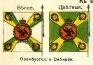 В Оренбургской инспекции для цветных пехотных знамён образца 1803 года установлены такие цвета: крест верблюжий, углы белые. По В. Звегинцову |
