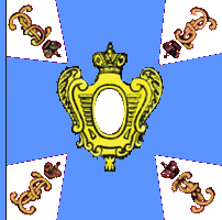 В докладе Воинской комиссии от 10 мая 1763 года для Севской дивизии установлены голубые знамена с белыми наугольниками. Кроме цветных в каждом полку полагалось одно белое знамя с наугольниками того же цвета, что у цветных знамен. По материалам книги В.Соколова "Вексиллологический справочник по флагам ..." |