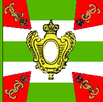 20 июля 1766 года установлен новый образец знамен для Украинской дивизии (когда в ее состав уже вошла Севская) - две белых и три зеленых полосы, наугольники красные. По материалам книги А.Висковатова В 1796 году полки вновь расписаны по дивизиям. К Украинской дивизии отошли Малороссийский и Киевский Гренадерские, Углицкий, Владимирский, Московский, Новоингерманландский, Архангелогородский, Нарвский, Брянский и Молодо-Баденский (бывш. Бутырский) мушкетерские полки. |