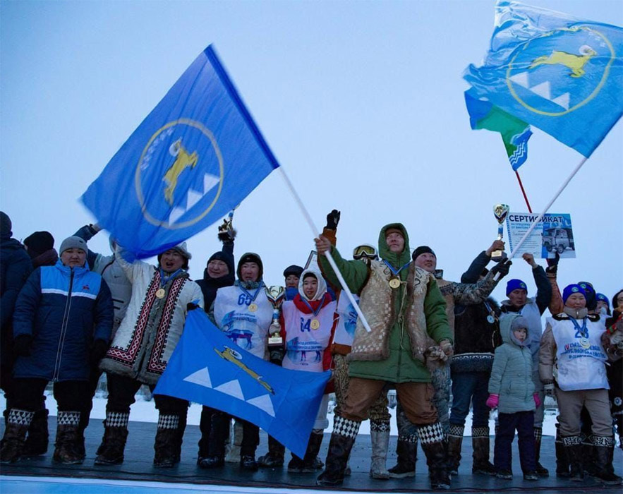 Фактически используются как флаги, выполненные по рекомендациям Геральдического совета (рисунок вверху этой страницы), так и синие полотнища с круглым гербом улуса. Фото: