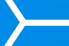 На проактике флаг улуса выполняется по "чешской модели", т.е. треугольник располагается у древка. Фото 2023 г. - спортсмены Кобяйского района на спартакиаде "Спортивные якутяне"