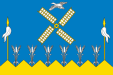 Полотнище с отношением 2:3, воспроизводящее композицию герба в голубом, желтом и белом цветах.