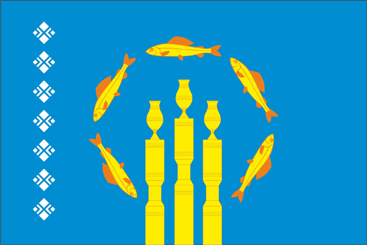 На VII-й сессии Нерюнгринского муниципального Совета 29 октября 2003 года утверждены герб и флаг муниципального образования "Нерюнгринский район" Флаг района повторяет по композиции герб: на синем полотнище три коновязи (сэргэ, символ гостеприимства) и уложенные в кольцо золотые рыбы (хариусы). Авторы символики объяснили свой выбор тем фактом, что название реки, давшей название местности и городу, переводится с эвенкийского как "хариусная", "тысяча хариусов", "много рыбы", это и показано золотыми рыбами, уложенными в кольцо. "... золото, из которого выполнены хариусы и сэргэ, говорят о богатстве, великодушии, уважении и справедливости. Лазоревое (голубое, синее) поле герба аллегорически показывает красоту природы, а также символизирует честь, славу, преданность, истину, красоту, добродетели". Использованы материалы электронной версии газеты "Индустрия Севера" (г.Нерюнгри) со ссылкой на Пресс-службу администрации района |