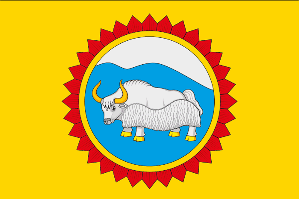 Белый (серебряный) як (сарлык) – олицетворение всех домашних животных, разводимых в хозяйствах сумона Саглы. Золотые рога и копыта – традиционный символ «геральдического вооружения», показывающий силу и здоровье животного.
