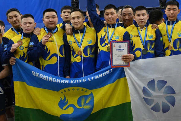 Спортсмены Вилюйского района используют для идентификации сине-желто-зеленый триколор с гербом улуса в центре. Фото 2025 года - Управление физкультуры и массового спорта РС(Я) |