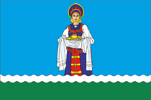 "Прямоугольное полотнище с отношением ширины к длине 2:3, воспроизводящее композицию герба Задонского сельского поселения в голубом, белом, желтом, зеленом и синем цветах".